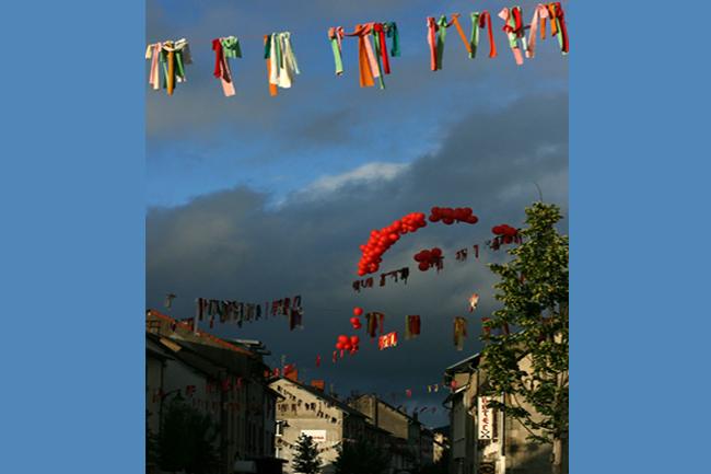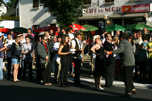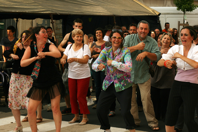 Ils sont quatre. Vêtus de propre, rasés de près, coincés dans leurs démarches raides, un peu snobs. Ils vont à la fête, au village. Ils déambulent, scrutant chaque recoin. Ils sont à la fête. Ils veulent voir, goûter, être comblés. Ils attendent un événement. Soudain, un air de musique semble réveiller en eux un écho lointain. Stupéfaits, ils lâchent prise et s’enhardissent, à la rencontre de la rue…