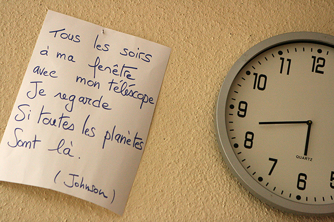 Cette phrase sera le préambule dans le cheminement avec chacun, pour l’amener à raconter sa relation avec un ou plusieurs espaces de l’institut, à choisir son endroit préféré, à se remémorer ce qu’il y a vécu ou à imaginer ce qui n’y a pas eu lieu, le transfigurer... Une façon de retraverser des moments vécus, par le concret d’un lieu, de dialoguer avec lui, de s’y appuyer, de devenir actif, inventif, avec les objets, les murs, les couloirs, les recoins, les extérieurs, la nature, les lumières, les sons…