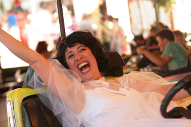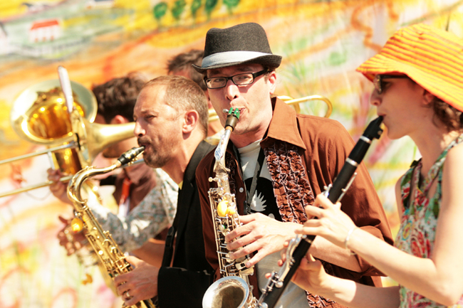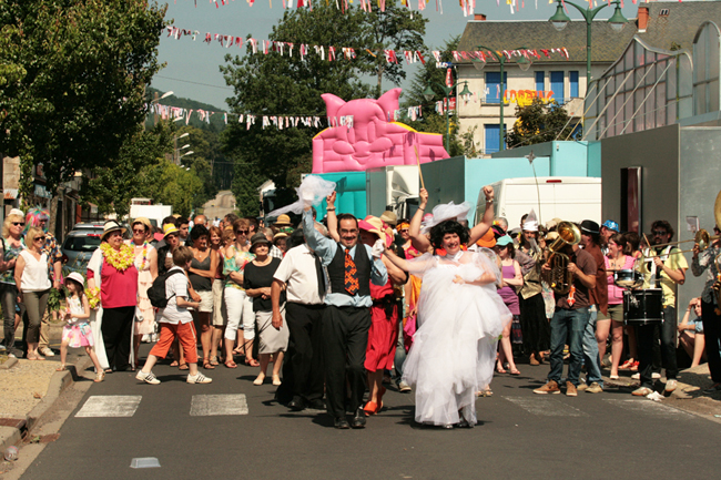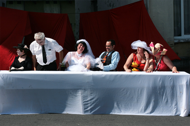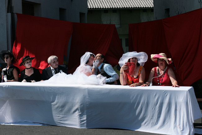 [une déambulation musicale avec arrêts burlesques et gastronomiques et final sentimental sur la piste d'auto tamponneuses!]